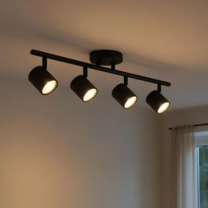 Der D-Lite Spot Trop Metal Sandy Black überzeugt durch seine Kombination aus Design und Praktikabilität. Die vier individuell verstellbaren Strahler ermöglichen eine gezielte Ausleuchtung – ideal zur Betonung von Kunstwerken, architektonischen Elementen oder bestimmten Raumbereichen. Die sand-schwarze Oberfläche sorgt für einen dezenten, stilvollen Look, der mit verschiedensten Farbpaletten harmoniert. Durch die Kompatibilität mit GU10-Leuchtmitteln können Sie Helligkeit und Lichtfarbe flexibel an Ihre Bedürfnisse anpassen.