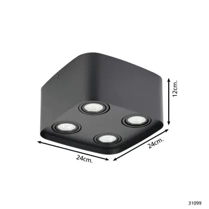 Eglo Decke Spot Arenzano Stahl Schwarz 18.8W 1380lm - 830 Warmweiß | Dimmbar - Geeignet für GU10