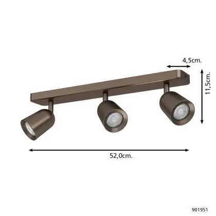 Beschreibung Eglo Decke Spot Camaldoli Stahl Kupfer | Geeignet für 3x GU10