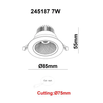 Beschreibung LED Deckenstrahler Rund schwenkbar 7W 560lm 60D - 930 | 85mm - Ausschnitt 70mm - UGR <19