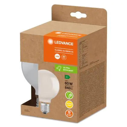 Die Ledvance Classic LED E27 Globe Matt 4W 840lm - 830 - Warmweiß | Ersatz für 60W ist eine effiziente E27 LED-Lampe und der perfekte Ersatz für Ihre konventionellen 60W Lampen mit E27-Sockel. Zudem strahlt sie Licht in der Farbtemperatur 3000K - Warmweiß aus und punktet durch eine lange Lebensdauer.