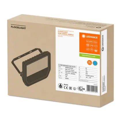 Beschreibung Ledvance LED-Scheinwerfer GEN 3 Weiß 50W 6000lm 100D - 865 Tageslichtweiß | IP65 - Symmetrisch - Ersatz für 100W