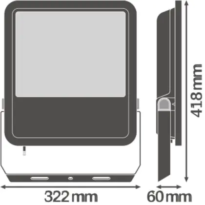Der Ledvance LED-Scheinwerfer 165W 4000K 20000lm IP65 | Schwarz - Symmetrisch ist in stilvollem Schwarz gehalten. Dank der hohen Robustheit kann die Leuchte problemlos in Außenbereichen eingesetzt werden.