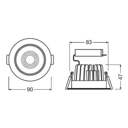 Beschreibung Ledvance LED-Spot schwenkbar 8W 660lm 36D - 840 Kaltweiß | Ausschnitt 83mm - IP20 - DALI Dimmbar