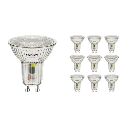 Die Mehrfachpackung 10x Noxion LED-Spot GU10 PAR16 4.8W 450lm 36D - 827 Extra Warmweiß | Ersatz für 50W ist eine effiziente GU10 LED-Lampe und der perfekte Ersatz für Ihre konventionelle Halogenlampe mit 65W und einem GU10-Sockel, bei welchem die zwei Stifte einen Abstand von 10 mm zueinander haben. Zudem strahlt das Produkt Licht in der Farbtemperatur 2700K - Extra Warmweiß aus und punktet durch eine lange Lebensdauer.