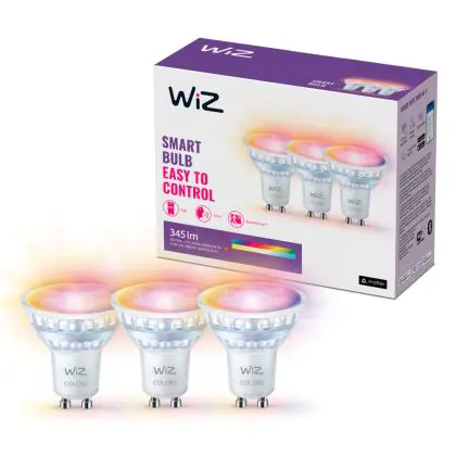 Die Mehrfachpackung 3x WiZ Smart LED-Spot GU10 PAR16 5W 400lm 36D | Höchste Farbwiedergabe - Dimmbar - Ersatz Für 50W ist eine effiziente GU10 LED-Lampe und der perfekte Ersatz für Ihre konventionelle Halogenlampe mit 50W und einem GU10-Sockel, bei welchem die zwei Stifte einen Abstand von 10 mm zueinander haben. Zudem strahlt das Produkt Licht in der Farbtemperatur aus und punktet durch eine lange Lebensdauer.