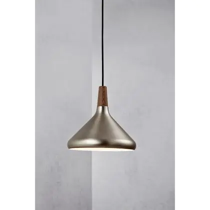 Die Nordlux Pendelleuchte aus der Modellreihe Nori zeichnet sich durch ein modernes Design und einen schicken Materialmix aus. Der Lampenschirm besteht aus Metall. Das Markenzeichen der Modellserie ist die Holzspitze in geöltem Nussbaum. Hinweis: Die Leuchte kommt ohne Leuchtmittel daher - passende E27 LED-Lampen finden Sie jedoch in unserem Shop.