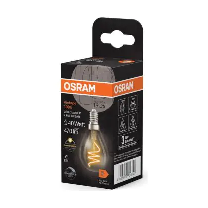 Die Osram Vintage 1906 LED Classic Slim E14 Birne Fadenlampe Klar 4.6W 470lm - 927 Extra Warmweiß | Höchste Farbwiedergabe - Dimmbar - Ersatz Für 40W ist eine effiziente E14 LED-Lampe mit Retrodesign und der perfekte Ersatz für Ihre konventionellen 40W Lampen mit E14. Zudem strahlt sie Licht in der Farbtemperatur 2700K - Extra Warmweiß aus und punktet durch eine lange Lebensdauer.