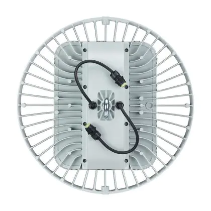 Das Highbay ist besonders einfach zu installieren, denn es muss für den Einbau nicht geöffnet werden. Für Wartungsarbeiten übrigens auch nicht. Zudem wurde das Gewicht der Leuchte so weit reduziert, dass sie bis zu 60 % leichter ist, als vergleichbare Hallenleuchten: Das Nettogewicht liegt bei gerade einmal 3,3 kg.