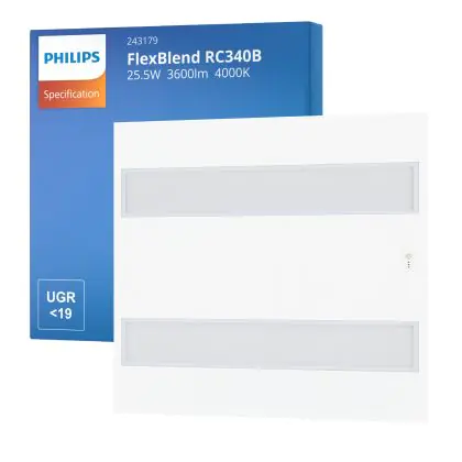 Beschreibung Philips LED Panel FlexBlend RC340B Weiß 25.5W 3600lm - 940 Kaltweiß | 60x60cm - UGR <19 - Höchste Farbwiedergabe - Bewegungs- und Lichtsensor