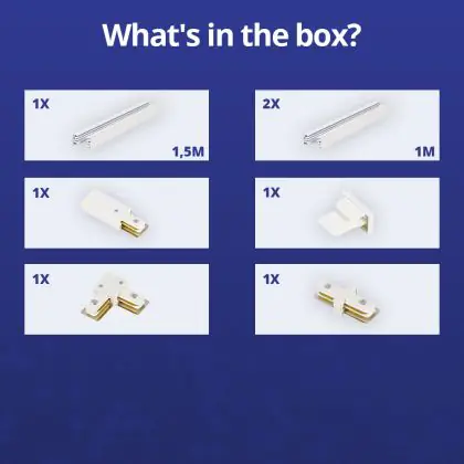 Beschreibung Rail Set 1-Phasen L 1,5 x 2 Meter Weiß | incl. Abschlusskappe, Stromanschluss und L -Verbinder