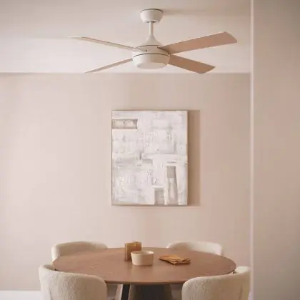 Ohne integrierte Beleuchtung konzentriert sich dieser Ventilator rein auf Luftzirkulation. Er ergänzt vorhandene Beleuchtungssysteme, ohne diese zu überdecken oder zu beeinflussen.